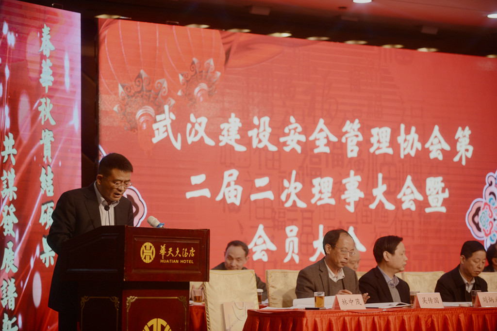 武漢市建筑安全協(xié)會(huì)副會(huì)長、山河集團(tuán)常務(wù)副總經(jīng)理林中茂主持會(huì)議。武漢市建委副主任夏平,市民政局處長張福先,市建委質(zhì)安處處長謝衛(wèi)華,市安全監(jiān)管站站長熊付剛、書記王偉震、副站長周捍東,市安全協(xié)會(huì)應(yīng)志剛等領(lǐng)導(dǎo)及在漢建筑施工單位參會(huì)代表共計(jì)400余人參加此次會(huì)議。