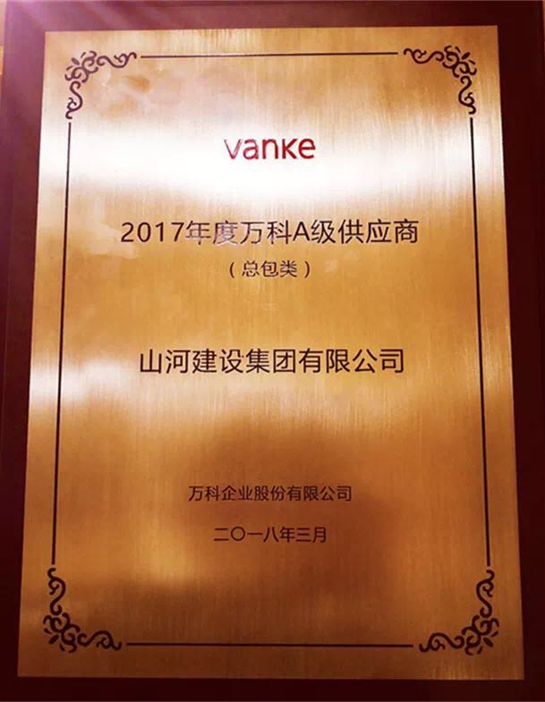 山河建設(shè)集團(tuán)再獲萬科A級供應(yīng)商榮譽(yù)