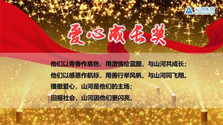 答謝宴現(xiàn)場還給“全體山河人”頒獎,這個獎,看似平實,但意義非凡。年年金秋開學季,每當集團的捐資助學倡議書發(fā)出,無論天山河海,萬水千山,都阻擋不了山河人愛的腳步,全體山河人都會發(fā)起一股巨大的能量――奉獻愛,齊出發(fā)。