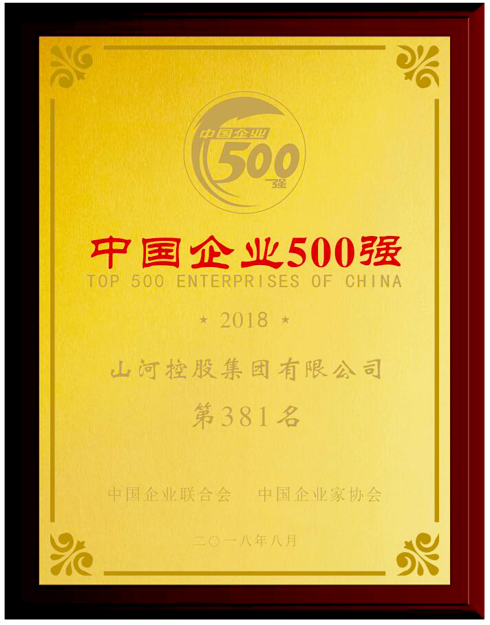 9月2日,中國企業(yè)聯(lián)合會、中國企業(yè)家協(xié)會在西安聯(lián)合發(fā)布2018年“中國企業(yè)500強”榜單,山河集團榮列中國企業(yè)500強第381位。這是山河集團自2014年首次以位列第413位次上榜以來,連續(xù)五年榮膺“中國企業(yè)500強”。今年創(chuàng)歷史最高排名,較去年位次前進66位!