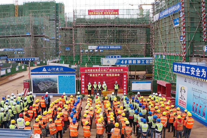 5月29日,以“消除事故隱患,筑牢安全防線”為主題的山河建設(shè)集團(tuán)云南(廣西)公司2020年度“安全生產(chǎn)月”現(xiàn)場啟動會在古滇水云里項目部舉行,來自公司各項目的管理及施工人員等200余人參加了活動。