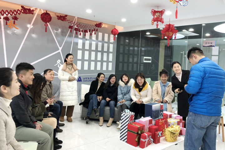 在陣陣歡笑聲中,跨年活動在員工風(fēng)采展示區(qū)拉開序幕,活動的“重頭戲”——交換禮物隨之開始。大家事先準(zhǔn)備好的精美禮物整整齊齊地碼在桌子上,并一一編上號碼。通過抽獎的方式,每個人都收到了屬于自己的一份驚喜。拆開禮物的一剎那,發(fā)自內(nèi)心的喜歡溢于言表。參加活動的員工紛紛表示,這是來自同事的真心祝福,寓意深刻,是最難忘的一份禮物。