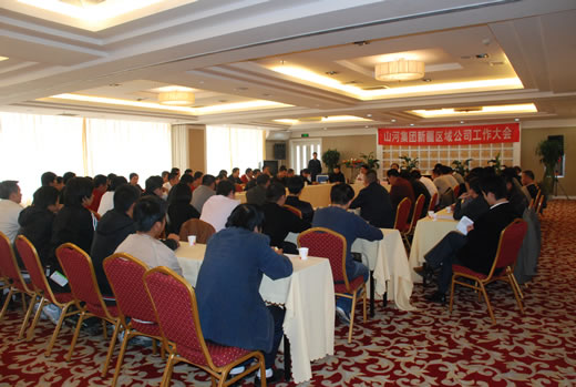 2008年10月19日,山河集團新疆區(qū)域市場發(fā)展研討會在烏魯木齊市錦泰源商務酒店隆重召開。出席本次會議的有集團公司董事長程理財、副總經(jīng)理龔衛(wèi)國、汪青,集團公司副總經(jīng)理武漢帝豪房地產(chǎn)公司奎屯分公司總經(jīng)理林金安、集團公司副總經(jīng)理新疆分公司總經(jīng)理童吉波、項目經(jīng)理曾秋喜、孫乃軍、徐漢江、程和平,人力資源部經(jīng)理徐嘉鑫、市場部副經(jīng)理黎樂、綜合辦公室副主任包P、尹四建,還有新疆本地的烏魯木齊、奎屯、鄯善等地區(qū)在建工程項目經(jīng)理、技術負責人、五大員等管理代表共計69人參加了本次會議。
